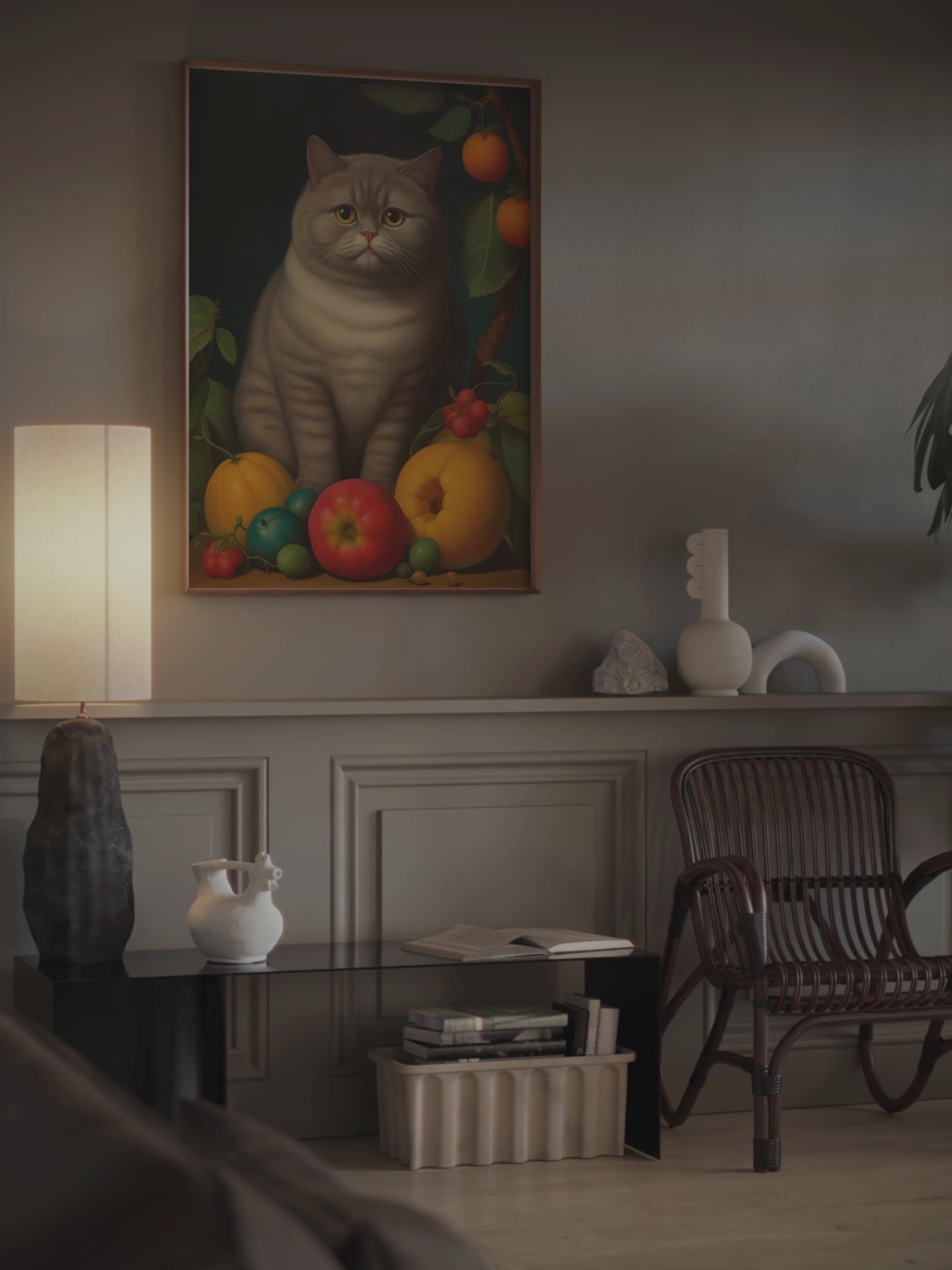 Egal, ob Sie ein Kunstliebhaber, ein Katzenliebhaber oder jemand sind, der einzigartige Dekoration schätzt, unser von Botero inspirierter Katzenporträtdruck ist eine unverzichtbare Ergänzung, die Freude und Bewunderung auslöst.