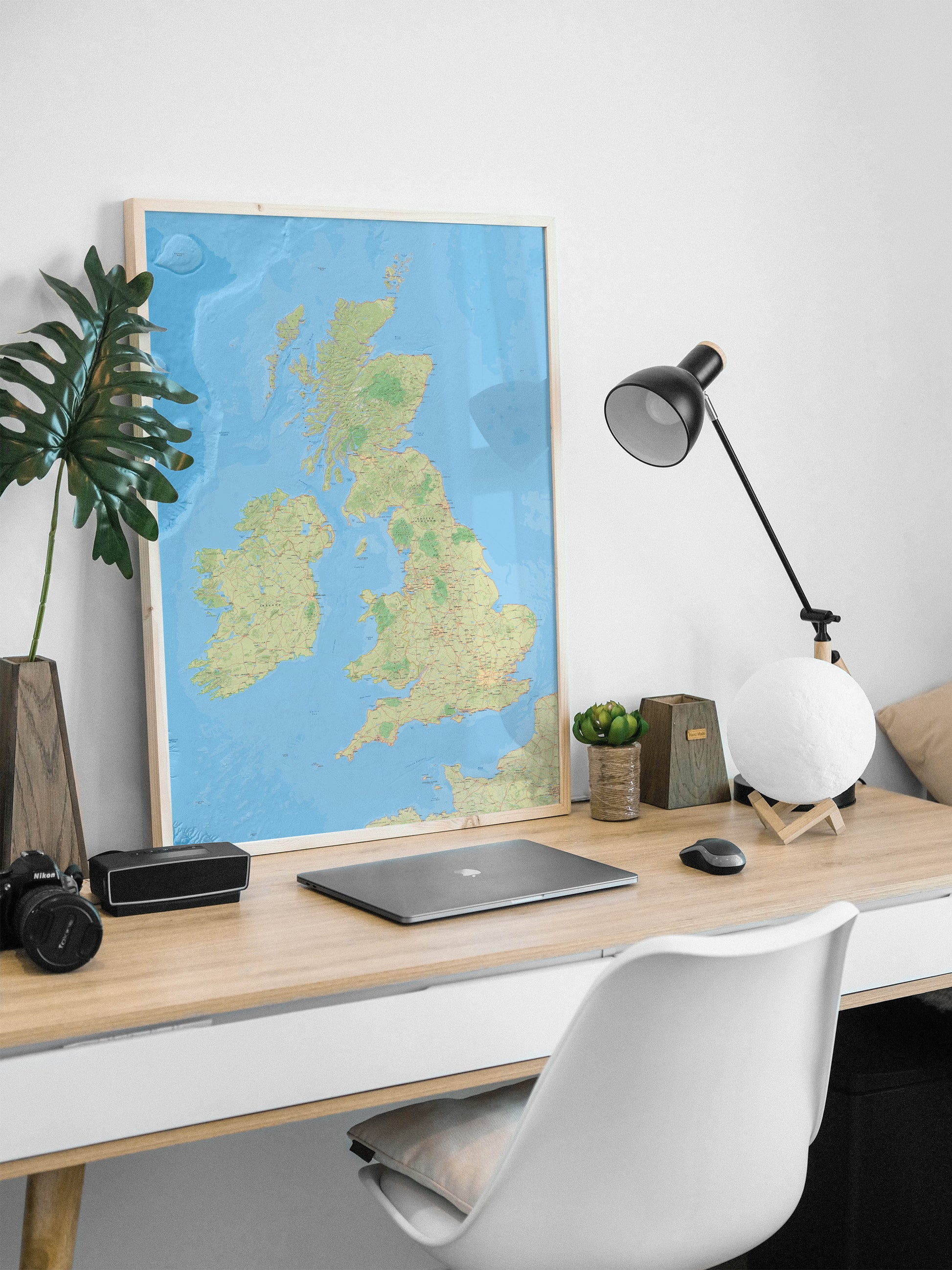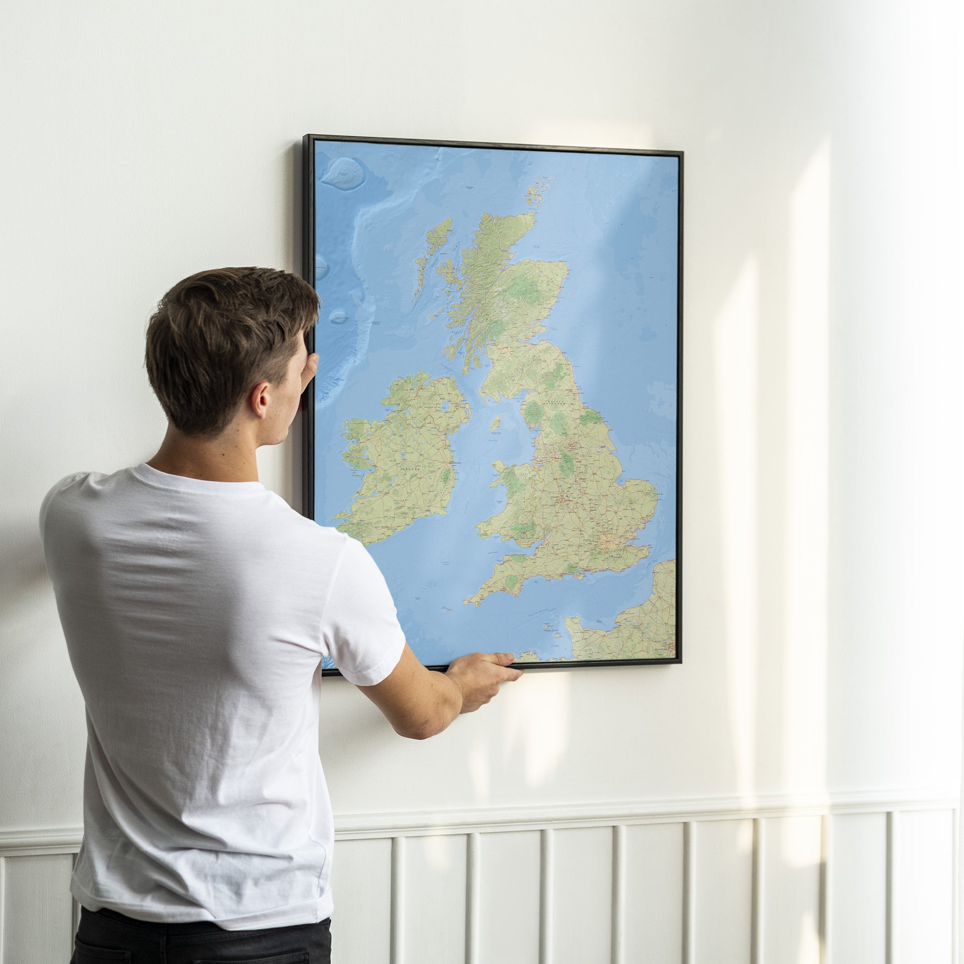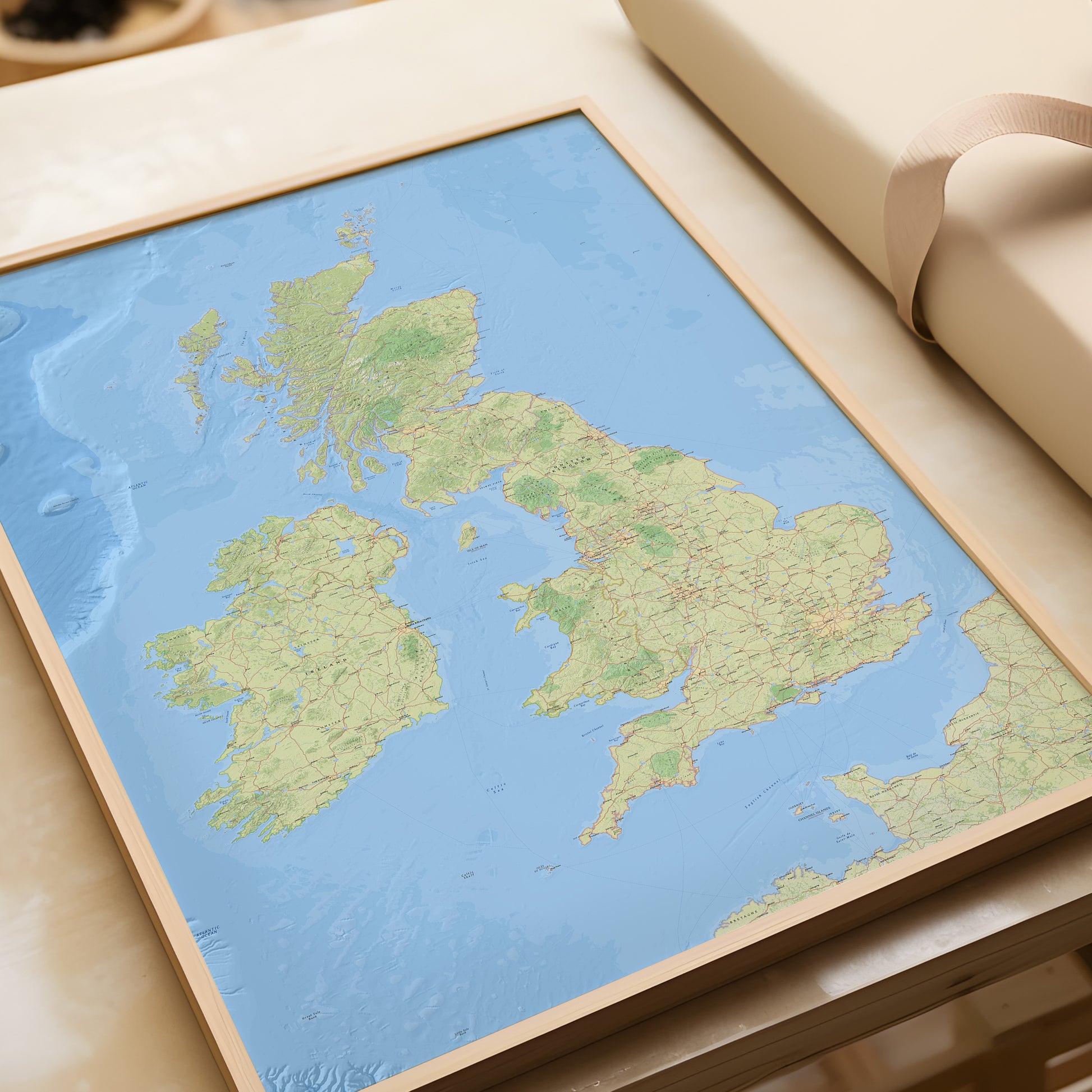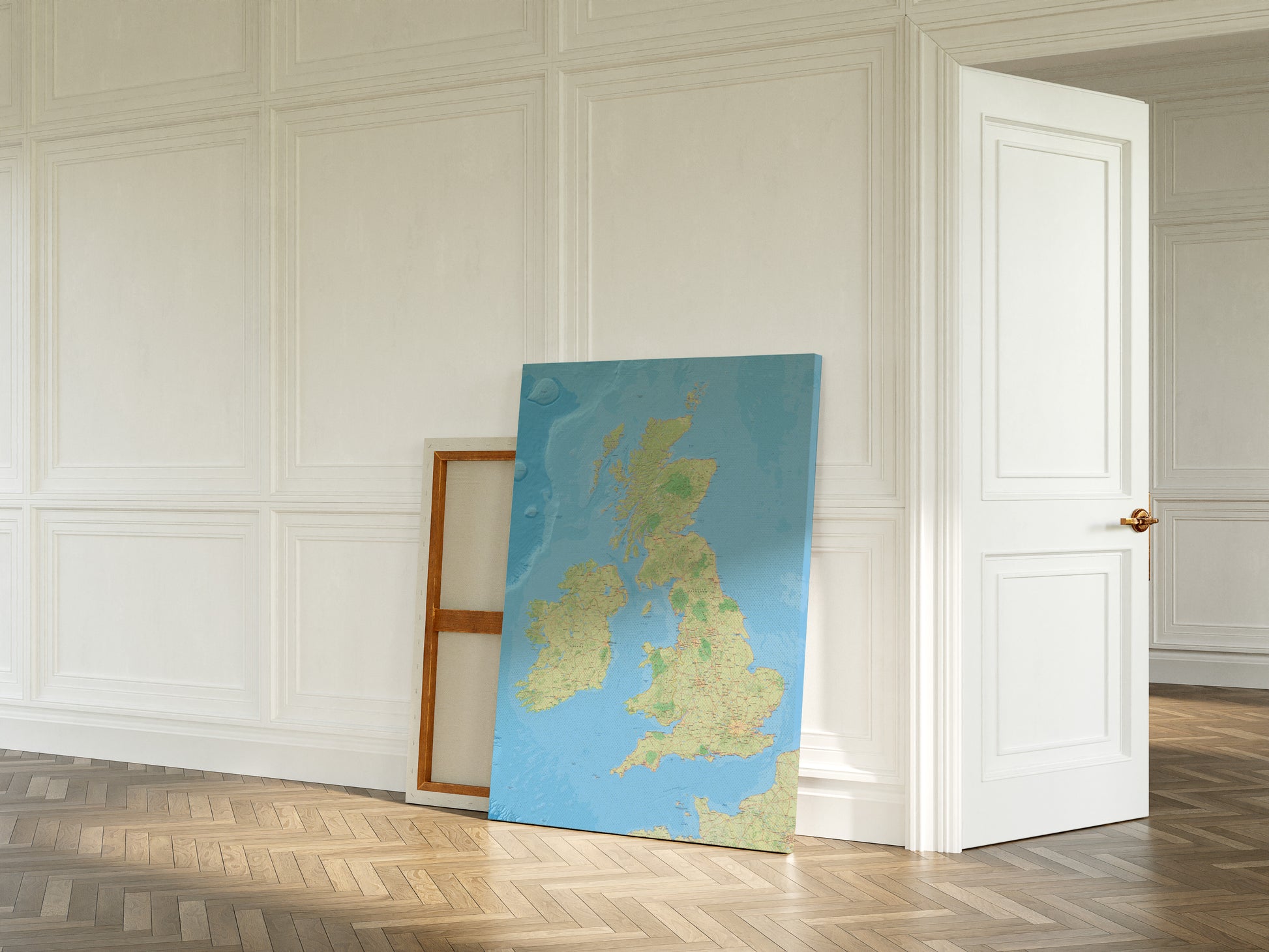 Großbritannien Karte drucken | Britische Inseln Leinwand Wandkunst