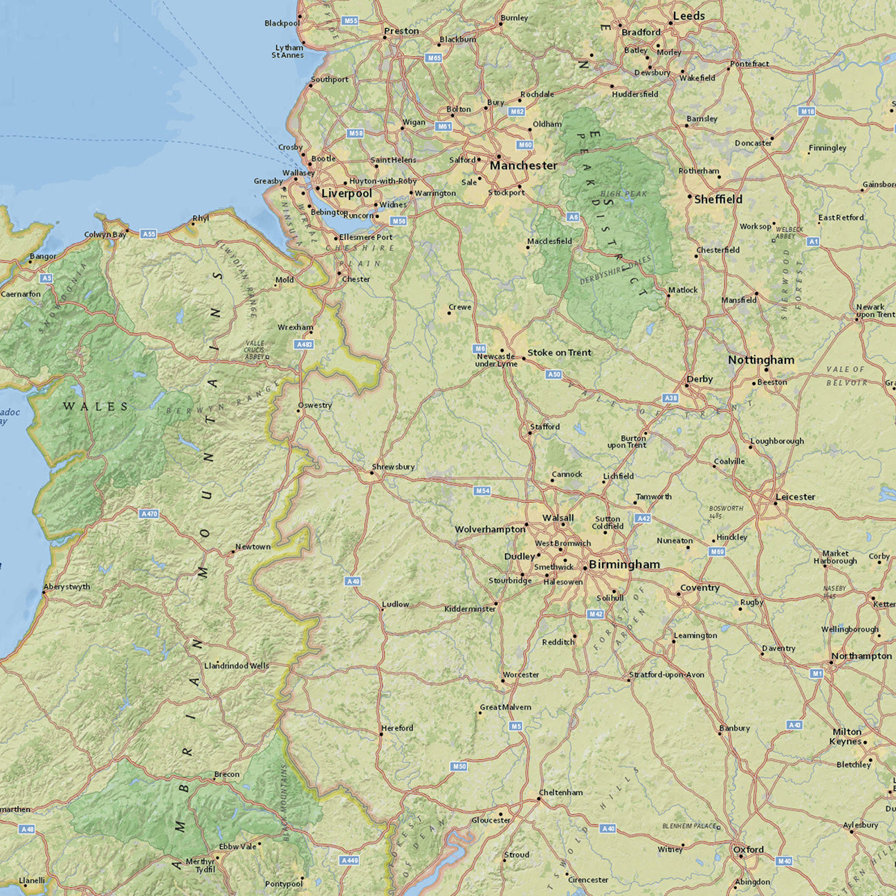 Erleben Sie die atemberaubenden Landschaften der Britischen Inseln mit dieser detailverliebten Karte. Sie zeigt die abwechslungsreiche Landschaft von den majestätischen Höhen Snowdonias bis hin zu den malerischen Tälern und Küsten. Jede Kontur ist gekonnt dargestellt und fängt die natürliche Schönheit dieser atemberaubenden Region ein.