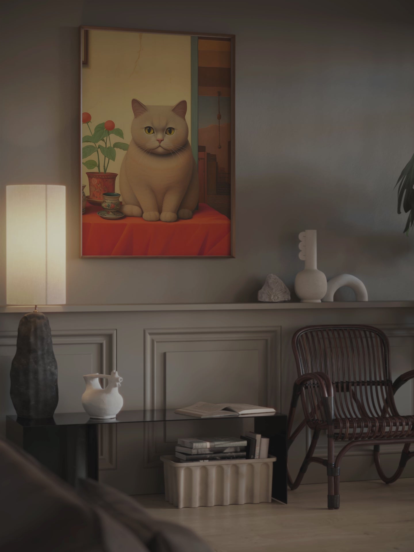 Botero Ginger Cat on table wall art. Free delivery Worldwide!