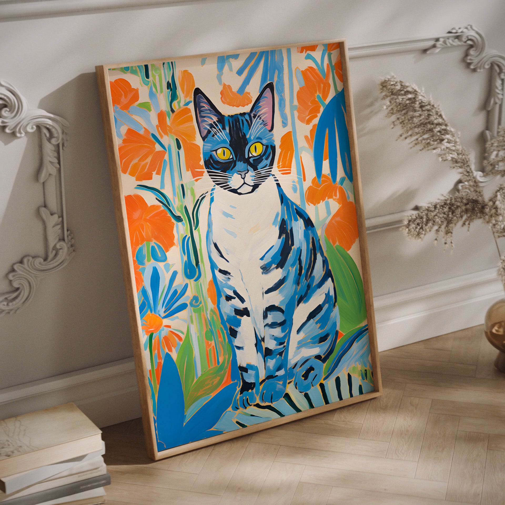 Experience the beauty and passion of art and cats with our Matisse Cat print. Bold shapes and vibrant colors will elevate your wall decor. Immerse yourself in the striking hues and be inspired by this one-of-a-kind piece.