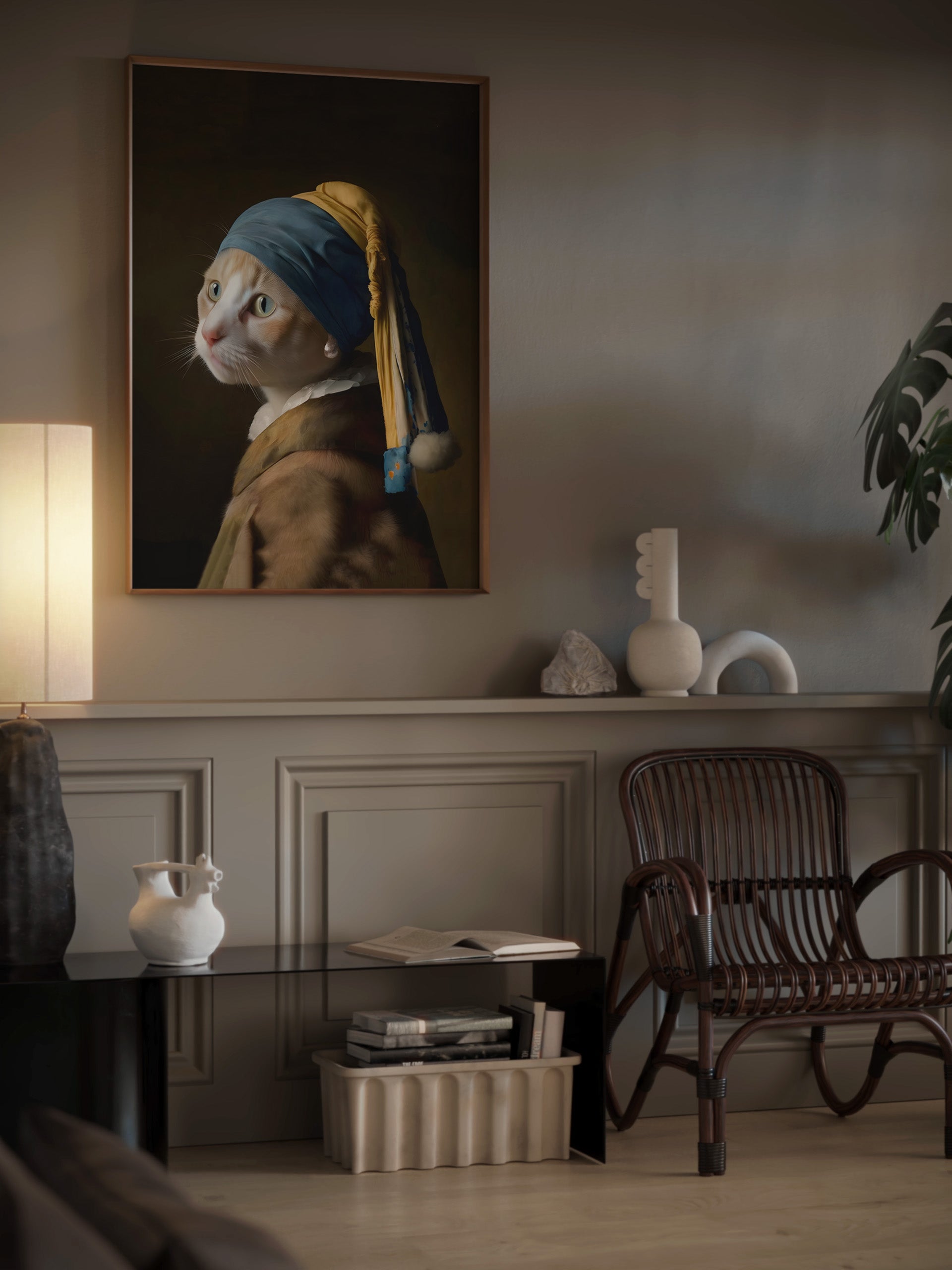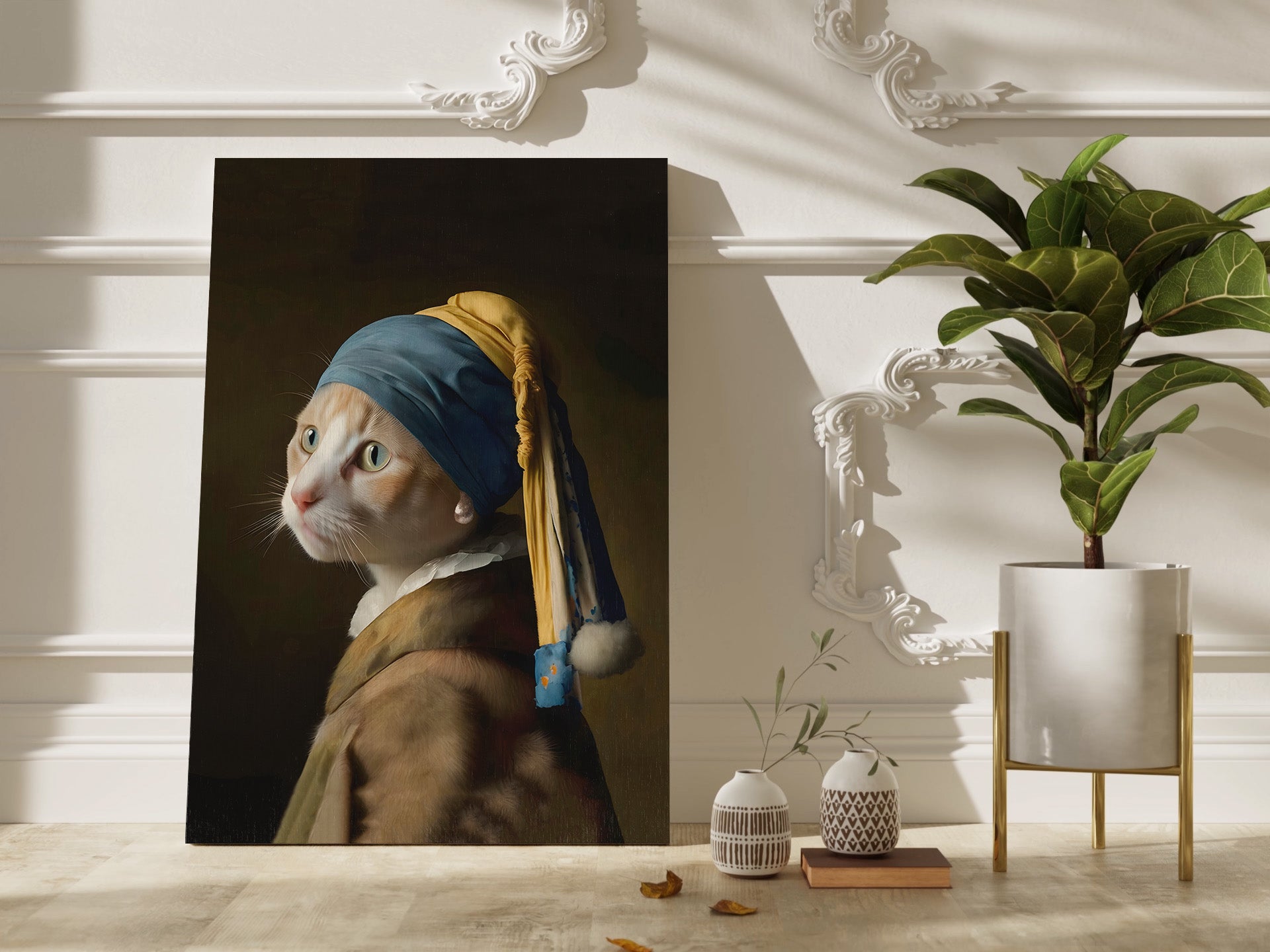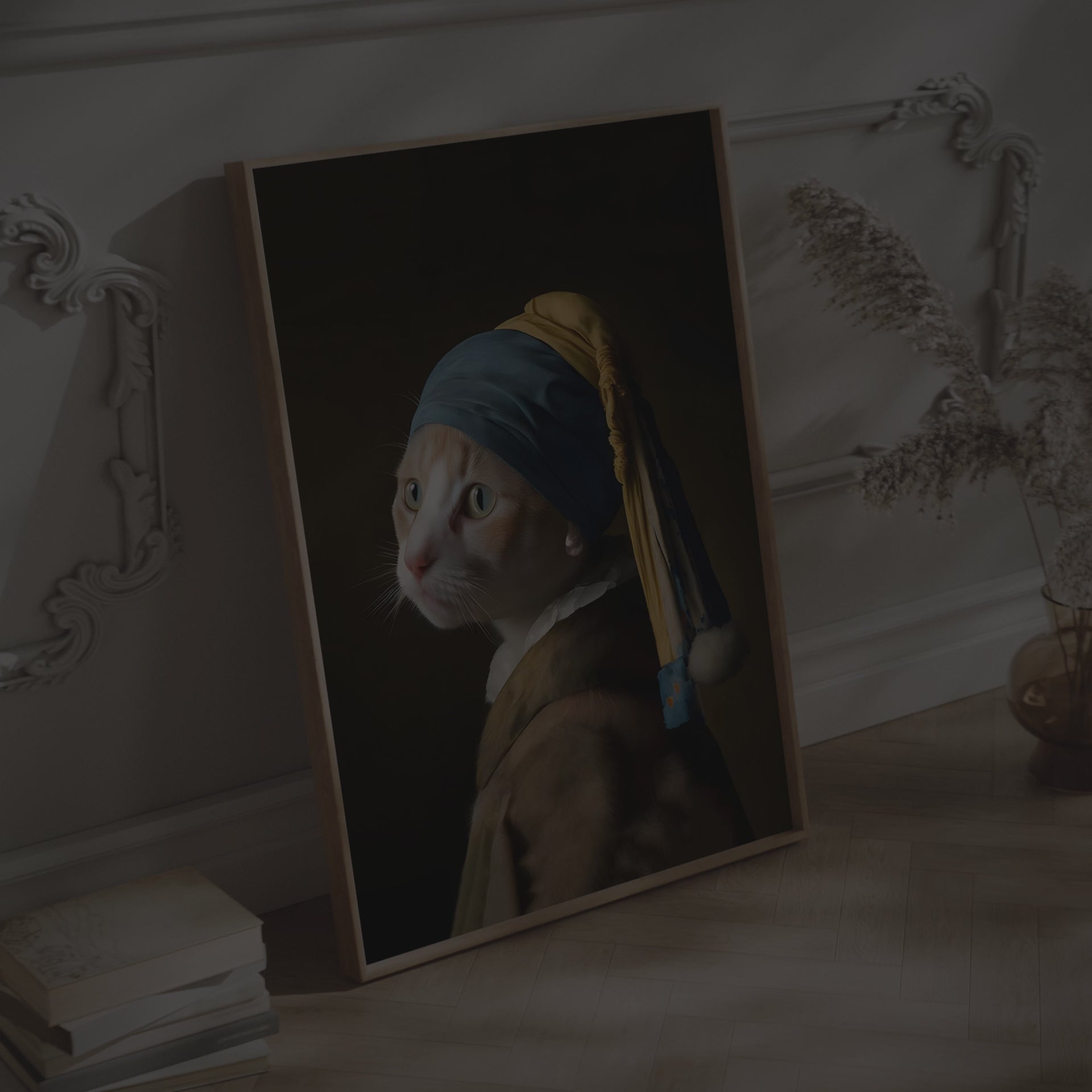 Ginger Cat with Pearl Earring. Free delivery Worldwide!