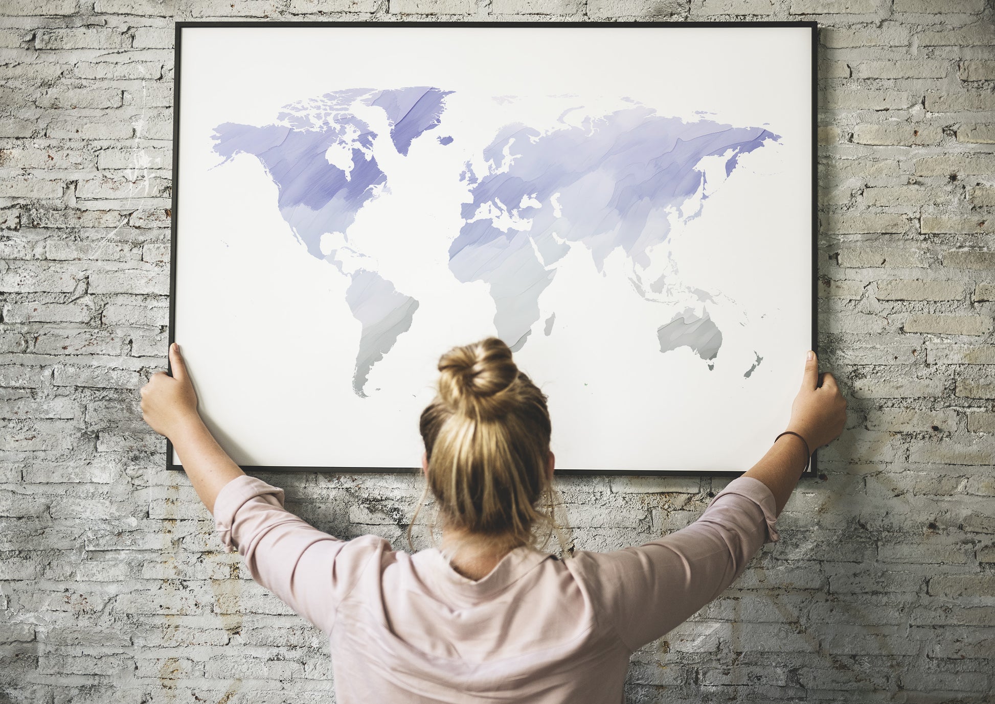 World Map print in soft purple watercolors. Free delivery Worldwide!
