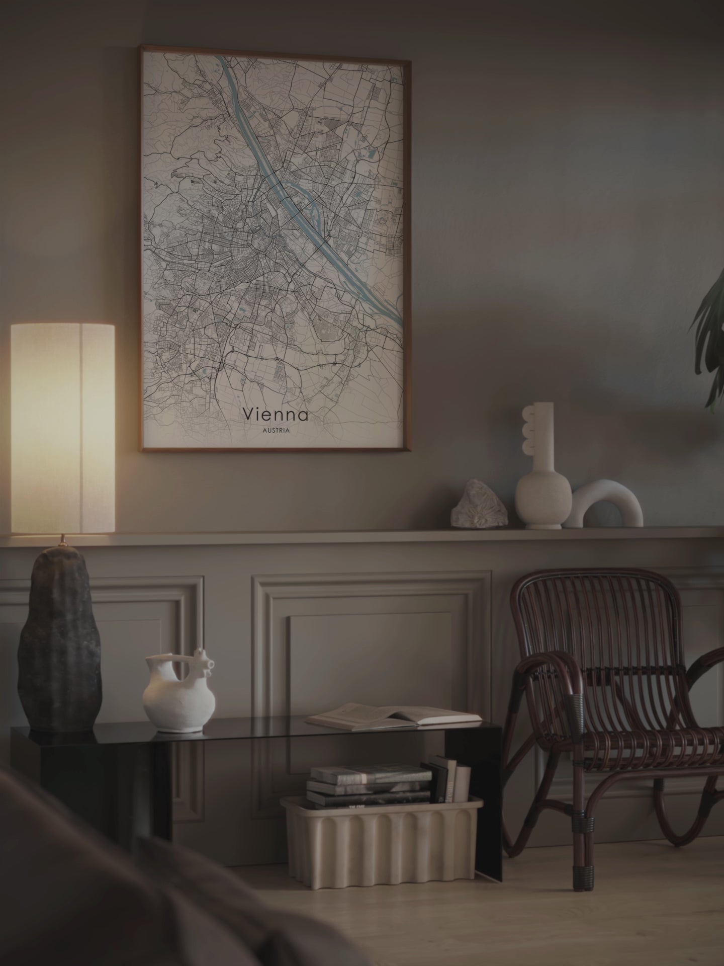 Immerse yourself in the intricate streets and iconic locations of Austria's capital, beautifully captured in this map. Whether you're a resident or have fond memories of the city, our print serves as a timeless reminder of Vienna's unique character.